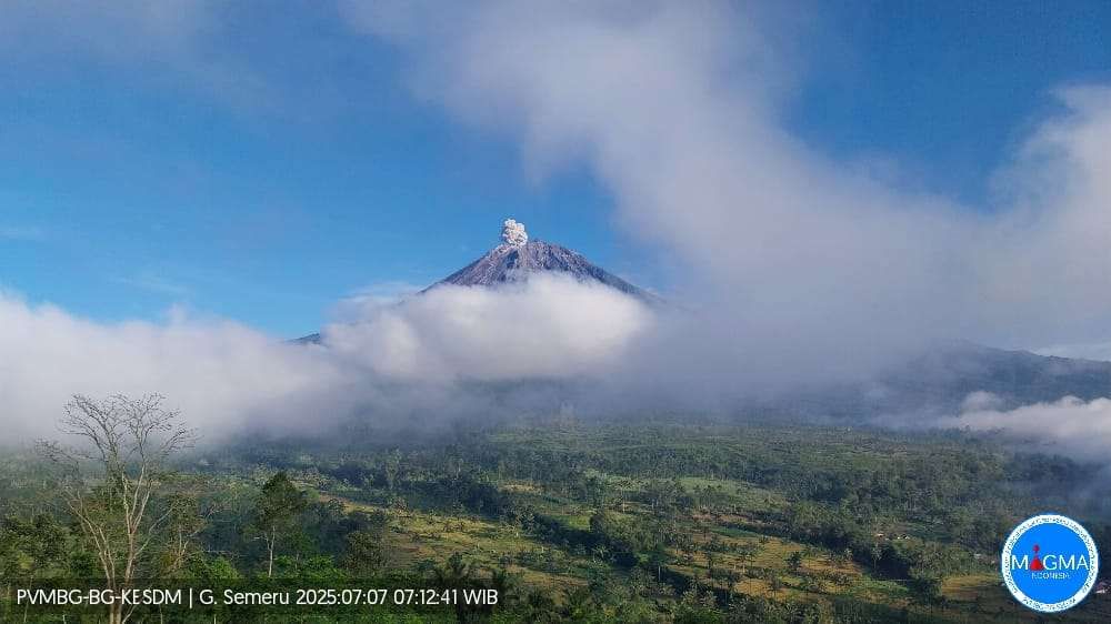 CARAPANDANG - Gunung Semeru yang berada di perbatasan Kabupaten Lumajang dan Malang, Jawa Timur kembali erupsi pada hari Senin (7/7/2025) pukul 07:11 WIB. Erupsi terpantau dengan tinggi kolom letusan teramati ± 600 meter di atas puncak (± 4276 meter di atas permukaan laut).