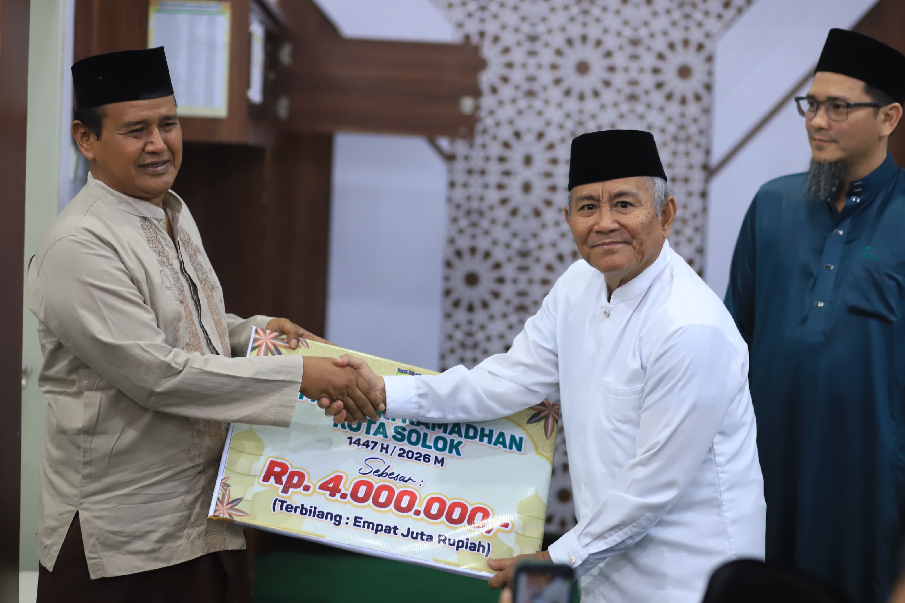 Wakil Wali Kota Solok H. Suryadi Nurdal menyampaikan terima kasih dan apresiasi yang setinggi-tingginya atas sambutan hangat dari Bapak/Ibu pengurus masjid dan jama’ah tarawih malam ini. Kehadiran kami dalam Tim Safari Ramadhan ini merupakan bentuk silaturahmi sekaligus komitmen pemerintah untuk terus menjalin kedekatan dan mempererat hubungan dengan masyarakat.