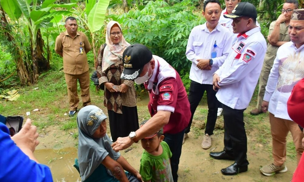 POHUWATO, CARAPANDANG.COM - Tak mengenal hujan lebat, Bupati Pohuwato, Saipul A. Mbuinga tetap mengunjungi warga yang sakit yang tidak bisa datang ke pelayanan terpusat yang ada di Puskesmas Duhiadaa pada pelaksanaan Gerakan Bersama Melayani Rakyat, Sehat, Maju, dan Sejahtera (Gebyar SMS), Selasa, (11/7/2023).