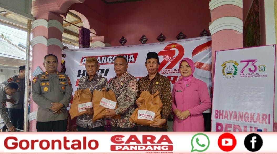 POHUWATO, CARAPANDANG - Kapolres Pohuwato, AKBP H. Busroni, S.I.K., M.H, didampingi Ketua Bhayangkari Cabang Pohuwato Ny. Khosi Busroni, melaksanakan anjangsana dalam rangka HUT Bhayangkara ke 79. Kali ini Kapolres mengunjungi Persatuan Purnawirawan (PP) Polri Kabupaten Pohuwato.