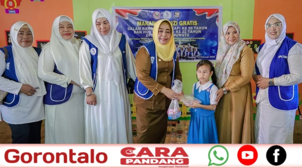 Ketua DPD IWAPI Provinsi Gorontalo, Suharsi Igirisa, yang didampingi oleh Sekretaris DPC IWAPI Kabupaten Pohuwato, Yahya Baladraf, beserta jajaran pengurus IWAPI menjelaskan bahwa pemberian Makanan Bergizi Gratis ini merupakan rangkaian peringatan HUT ke-50 IWAPI dengan tema “Konsistensi dalam Pemberdayaan Ekonomi Perempuan, Inovatif, Inklusif, Kolaboratif Menuju Indonesia Emas”.