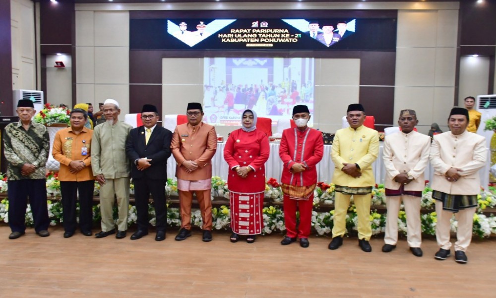 POHUWATO, CARAPANDANG.COM - Rapat Paripurna Istimewa DPRD dalam rangka Hari Ulang Tahun (HUT) ke-21 Kabupaten Pohuwato berlangsung di ruang sidang DPRD Pohuwato yang dihadiri Pj. Gubernur Gorontalo, Ismail Pakaya, Bupati Pohuwato, Saipul A. Mbuinga, Wakil Bupati, Suharsi Igirisa, para bupati/wali kota se-Provinsi Gorontalo, instansi vertikal provinsi, Forkopimda Pohuwato, Sekda Iskandar Datau, asisten, staf ahli bupati, pimpinan OPD.