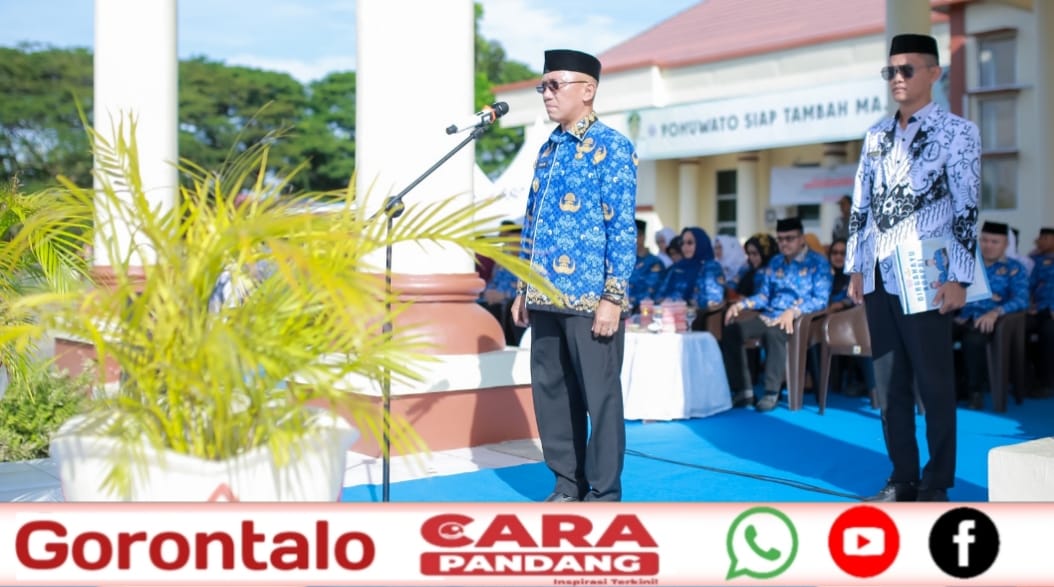 POHUWATO, CARAPANDANG - Peringatan Hari Ulang Tahun Korps Pegawai Republik Indonesia (Korpri) ke-54 yang dirangkaikan dengan Hari Pahlawan, Hari Guru Nasional, serta Hari Ulang Tahun Persatuan Guru Republik Indonesia (PGRI) ke-80 tingkat Kabupaten Pohuwato berlangsung khidmat di halaman Kantor Bupati, Kamis (27/11/2025). Upacara dipimpin Wakil Bupati Pohuwato, Iwan S. Adam, dan dihadiri Sekda Iskandar Datau, para asisten, staf ahli bupati, pimpinan OPD, Ketua Korpri Pohuwato, Usman H. Bay, Ketua PGRI Pohuwato, Coleng Tandjomada, perwakilan Bank SulutGo, serta jajaran anggota Korpri dan PGRI.