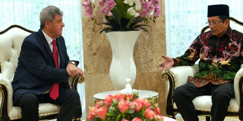 CARAPANDANG - Menteri Agama Nasaruddin Umar menerima audiensi Duta Besar Palestina untuk Indonesia, Zuhair Al-Shun, di Masjid Istiqlal, Jakarta, Senin, 5 Januari 2026.