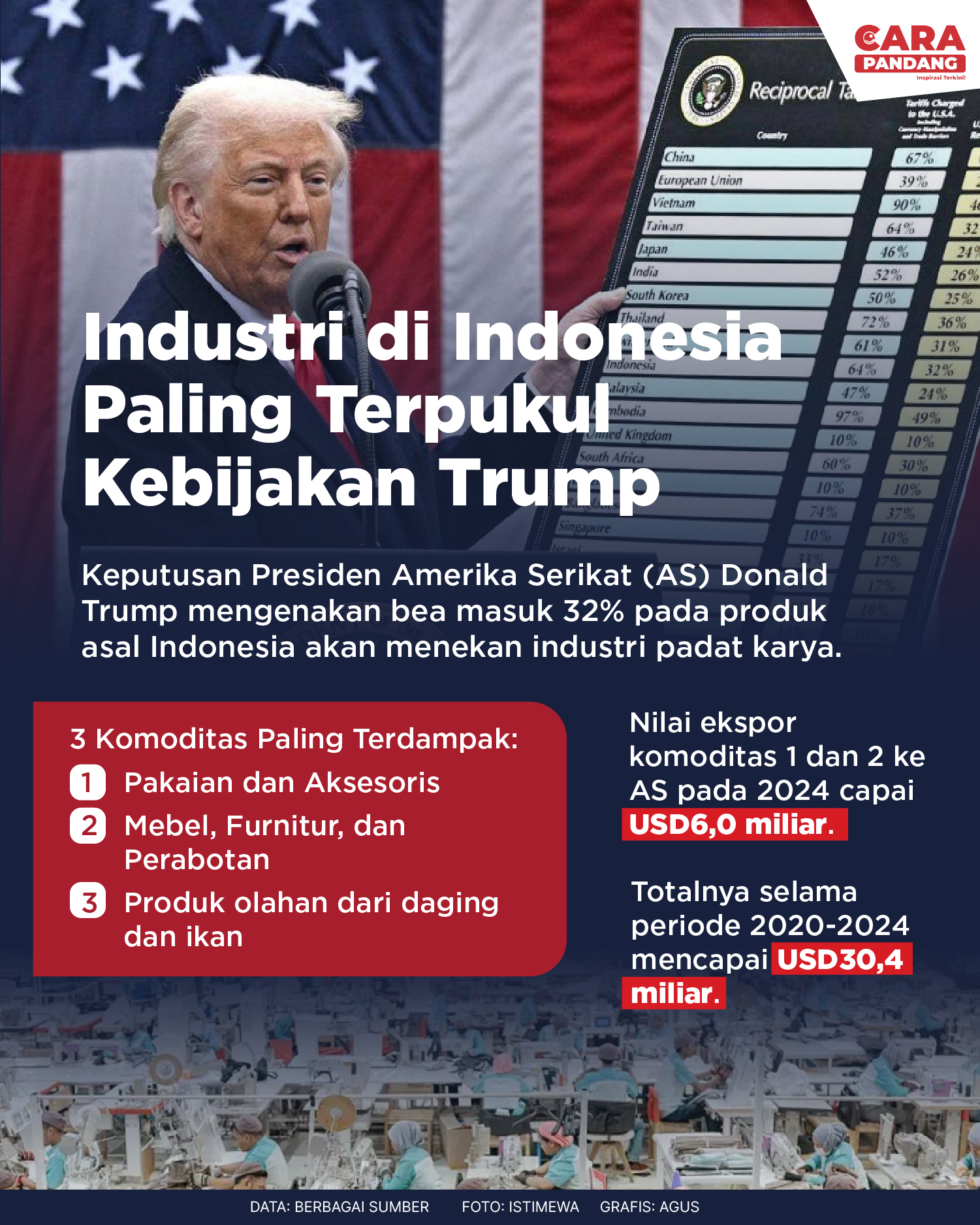 Beranda Infografis Industri di Indonesia Paling Terpukul Kebijakan Trump Infografis Industri di Indonesia Paling Terpukul Kebijakan Trump Penulis Amira Izzati - 07 April 2025 19:37 0 CARAPANDANG - Industri di Indonesia Paling Terpukul Kebijakan Trump Tags Berita Sebelumnya Dari Ranah ke Rantau, Silaturahmi Menguatkan Rasa, Menyatukan Asa Berita Berikutnya Indonesia Dalam Dilema Misi Perdamaian Dunia LEAVE A REPLY Cancel reply Comment: Please enter your comment! Name:* Please enter your name here Email:* You have entered an incorrect email address! Please enter your email address here Website: Save my name, email, and website in this browser for the next time I comment. Berita Teratas Kisah Ajaib Nabi Sulaiman dan Anak yang Berbakti kepada Orang Tua 8 Cara Merawat Kucing Kesayangan Agar Tubuhnya Selalu Sehat Minuman yang Mampu Redakan Batuk yang Menganggu Manfaat Ajaib Bawang Putih Bagi Kesehatan 8 Cara Menjaga Kesehatan Gigi dan Mulut yang Efektif Berita Terkait Berita Terkait Wajah Baru PP Tunas: Garda Terdepan Perlindungan Anak Indonesia Zoel Rachman - 31 Maret 2026 09:42 MBG 5 Hari Sepekan Masih Wacana Maliq - 30 Maret 2026 11:49 Presiden Ingin Semua Kendaraan Dikonversi ke Listrik Maliq - 30 Maret 2026 11:48 Kewaijiban PSE Terhadap Pengguna Anak Maliq - 30 Maret 2026 11:15