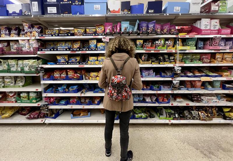 Seorang wanita berbelanja di sebuah pasar swalayan di London, Inggris, pada 5 Mei 2022. (CARAPANDANG/Xinhua/Li Ying)