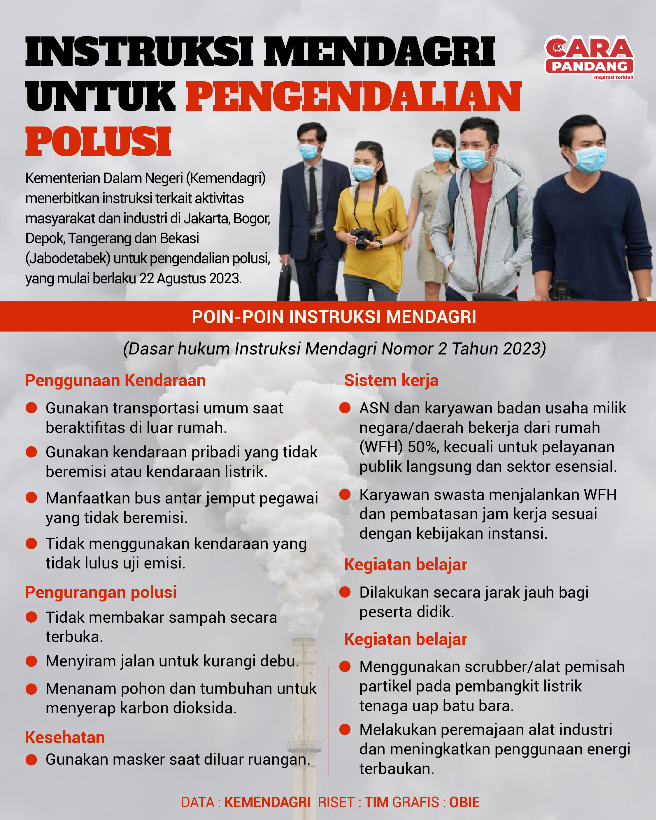 Kemendagri menerbitkan instruksi terkait aktivitas masyarakat dan industri di Jabodetabek untuk pengendalian polusi, yang mulai berlaku 22 Agustus 2023.