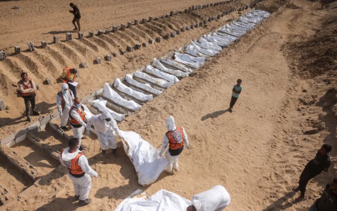 "Ketika warga pergi ke area itu setelah penarikan pasukan, mereka menemukan para syuhada dikembalikan secara acak, ditutup dengan pasir oleh buldoser," jelas al-Rifi.