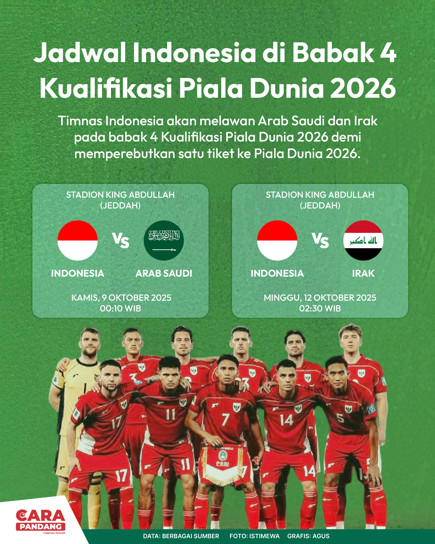 Beranda Infografis Jadwal Babak 4 Kualifikasi Piala Dunia 2026 Infografis Jadwal Babak 4 Kualifikasi Piala Dunia 2026 Penulis Amira Izzati - 18 September 2025 06:58 0 Jadwal Babak 4 Kualifikasi Piala Dunia 2026 Tags Berita Sebelumnya Tebarkan Kebaikan, Puncak HUT PMI ke-80 di Payakumbuh Berlangsung Meriah Berita Berikutnya Indonesia Dalam Dilema Misi Perdamaian Dunia LEAVE A REPLY Cancel reply Comment: Please enter your comment! Name:* Please enter your name here Email:* You have entered an incorrect email address! Please enter your email address here Website: Save my name, email, and website in this browser for the next time I comment. Berita Teratas Kisah Ajaib Nabi Sulaiman dan Anak yang Berbakti kepada Orang Tua 8 Cara Merawat Kucing Kesayangan Agar Tubuhnya Selalu Sehat Minuman yang Mampu Redakan Batuk yang Menganggu Manfaat Ajaib Bawang Putih Bagi Kesehatan 8 Cara Menjaga Kesehatan Gigi dan Mulut yang Efektif Berita Terkait Berita Terkait Wajah Baru PP Tunas: Garda Terdepan Perlindungan Anak Indonesia Zoel Rachman - 31 Maret 2026 09:42 MBG 5 Hari Sepekan Masih Wacana Maliq - 30 Maret 2026 11:49 Presiden Ingin Semua Kendaraan Dikonversi ke Listrik Maliq - 30 Maret 2026 11:48 Kewaijiban PSE Terhadap Pengguna Anak Maliq - 30 Maret 2026 11:15