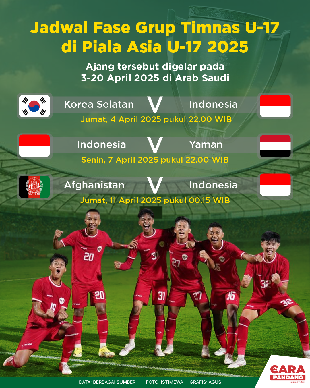 CARAPANDANG.COM - Jadwal Fase Grup Timnas U-17 di Piala Asia U-17 2025.