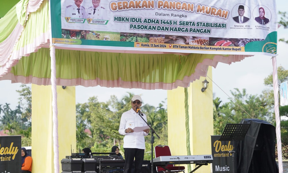 Melalui Gerakan Pangan Murah (GPM) diharapkan pasokan dan harga pangan dapat dijangkau oleh masyarakat," ungkap Bupati Safaruddin mengawali sambutannya.