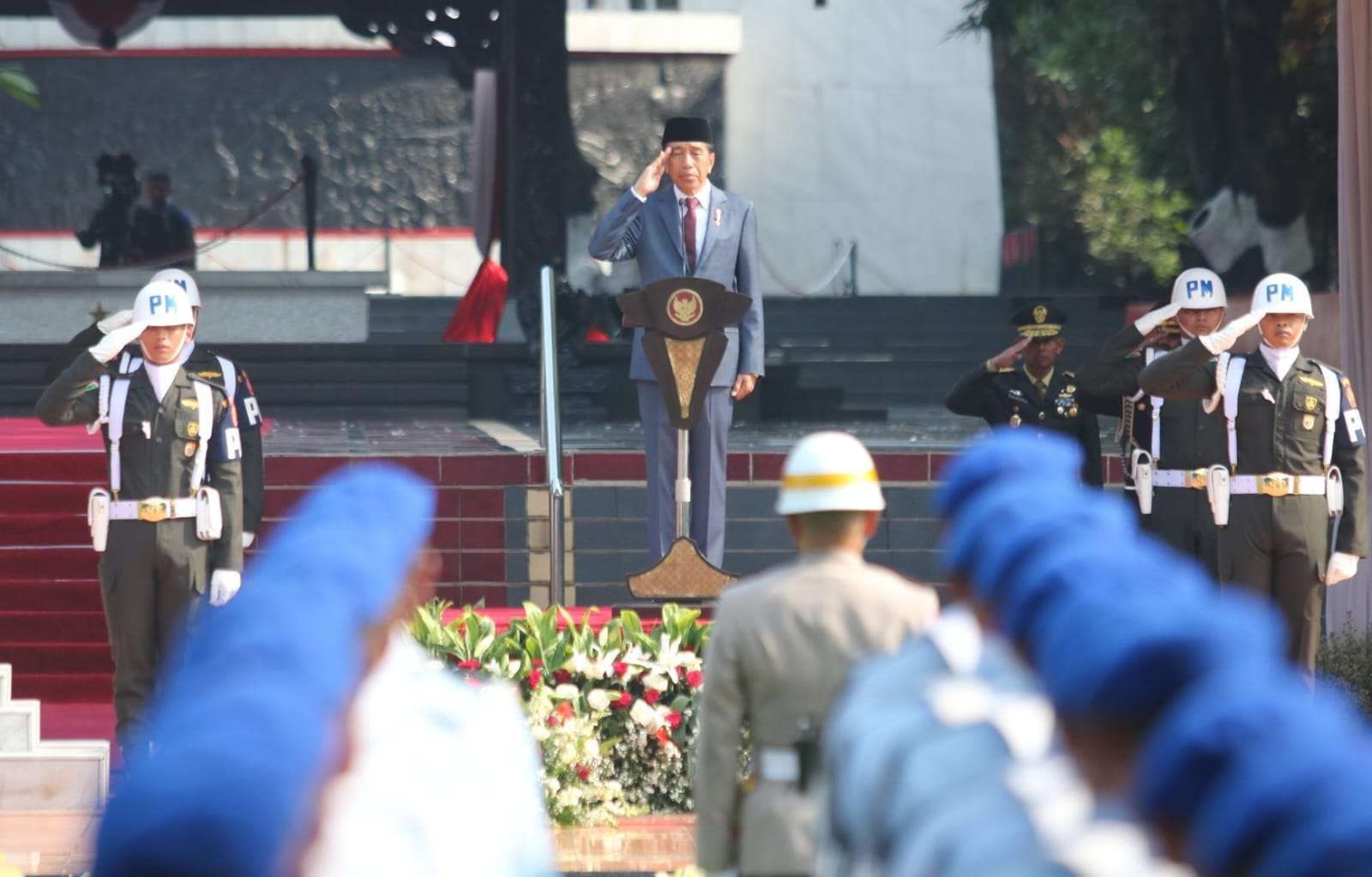 CARAPANDANG - Presiden Joko Widodo hadir dalam upacara Hari Kesaktian Pancasila di Monumen Pancasila Sakti, Jakarta, Selasa (1/10/2024). Upacara ini turut menghadirkan oleh petinggi negara, TNI AL/AD/AU, serta sejumlah pelajar SD/SMP/SMA dari seluruh Jakarta.