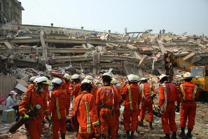 Tim penyelamat dan sukarelawan melakukan operasi penyelamatan dan pertolongan pascagempa bumi di Mandalay, Myanmar, pada 30 Maret 2025. (Xinhua/Myo Kyaw Soe)