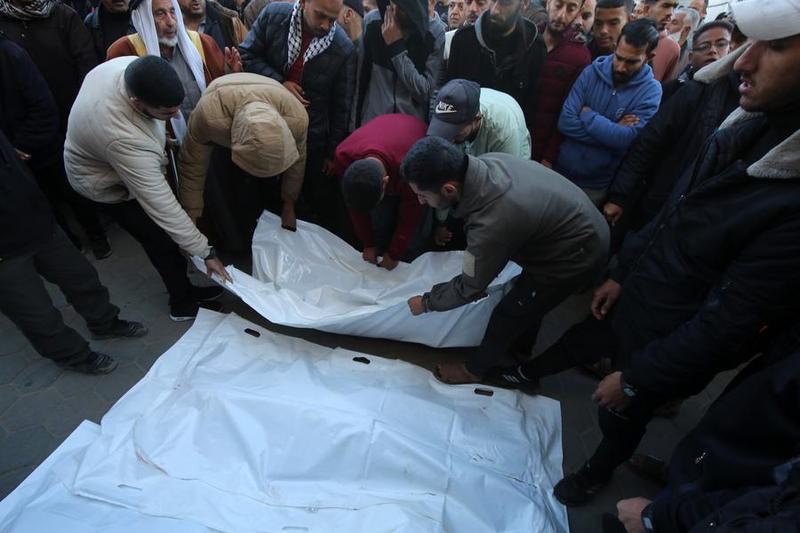 Jenazah sejumlah korban terlihat di sebuah rumah sakit di Kota Deir al-Balah, Jalur Gaza tengah, pada 8 Januari 2025. (Xinhua/Rizek Abdeljawad)