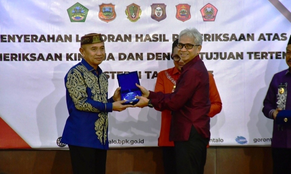 Piagam penghargaan dari BPK RI diserahkan oleh Kepala BPK RI Perwakilan Provinsi Gorontalo, Ahmad Luthfi H. Rahmatullah, S.E.,M.H.,Ak.,CA,CSFA yang diterima Bupati Pohuwato, Saipul A. Mbuinga di Auditorium Badan Pemeriksa Keuangan (BPK) RI Perwakilan Prov