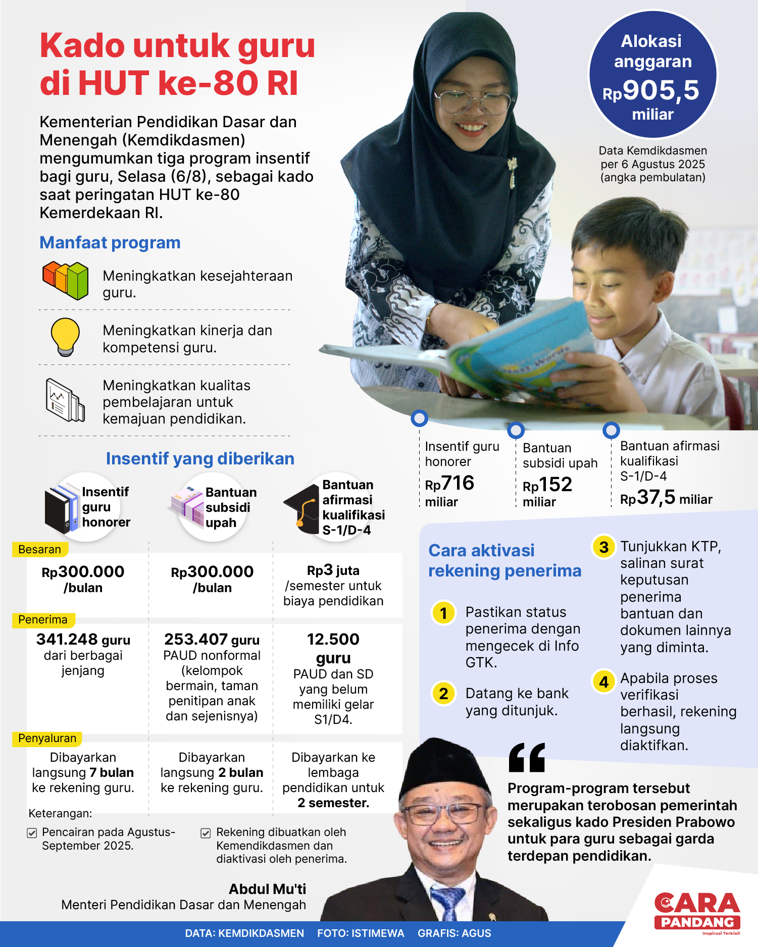 Beranda Infografis Kado untuk Guru di HUT ke-80 RI Infografis Kado untuk Guru di HUT ke-80 RI Kado untuk Guru di HUT ke-80 RI. Penulis Edo Soeryadi - 13 Agustus 2025 06:06 0 CARAPANDANG.COM - Kado untuk Guru di HUT ke-80 RI. Tags Infografik HUT RI 80 Berita Sebelumnya Tentara Thailand Terluka Akibat Ranjau Darat di Perbatasan Kamboja Berita Berikutnya Indonesia Dalam Dilema Misi Perdamaian Dunia LEAVE A REPLY Cancel reply Comment: Please enter your comment! Name:* Please enter your name here Email:* You have entered an incorrect email address! Please enter your email address here Website: Save my name, email, and website in this browser for the next time I comment. Berita Teratas Kisah Ajaib Nabi Sulaiman dan Anak yang Berbakti kepada Orang Tua 8 Cara Merawat Kucing Kesayangan Agar Tubuhnya Selalu Sehat Minuman yang Mampu Redakan Batuk yang Menganggu Manfaat Ajaib Bawang Putih Bagi Kesehatan 8 Cara Menjaga Kesehatan Gigi dan Mulut yang Efektif Berita Terkait Berita Terkait Wajah Baru PP Tunas: Garda Terdepan Perlindungan Anak Indonesia Zoel Rachman - 31 Maret 2026 09:42 MBG 5 Hari Sepekan Masih Wacana Maliq - 30 Maret 2026 11:49 Presiden Ingin Semua Kendaraan Dikonversi ke Listrik Maliq - 30 Maret 2026 11:48 Kewaijiban PSE Terhadap Pengguna Anak Maliq - 30 Maret 2026 11:15