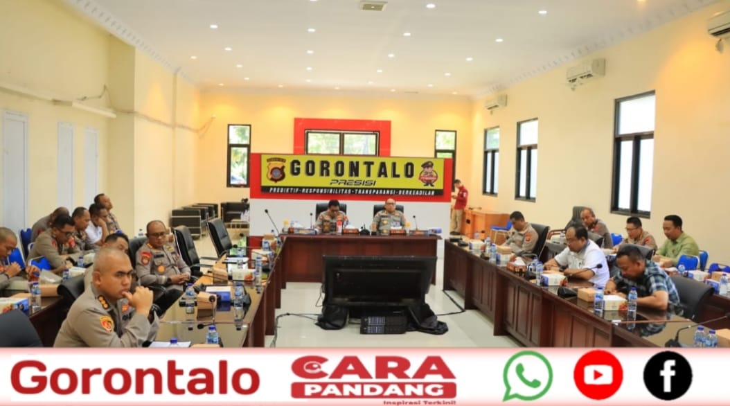 POHUWATO, CARAPANDANG - Kapolda Gorontalo Irjen Pol. Drs. Pudji Prasetijanto Hadi, M.H.,  hadiri kegiatan Grand Entry Meeting (pertemuan besar) yang diselenggarakan oleh Badan Pemeriksa Keuangan Republik Indonesia (BPKRI) melalui Zoom di Aula Bid Dokkes Polda Gorontalo, Selasa, 23 Januari 2025.