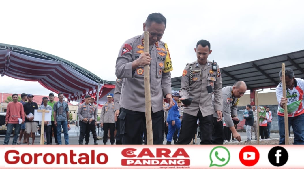 POHUWATO, CARAPANDANG - Kepala Kepolisian Daerah (Kapolda) Gorontalo, Irjen Pol Drs. Pudji Prasetijanto Hadi,MH, didampingi Waka Polda Brigjen Pol Simson, bersama seluruh Pejabat Utama menghadiri kegiatan penanaman dalam rangka mendukung Program Prioritas 100 Hari Asta Cita Presiden RI bidang ketahanan pangan yang bertempat di SPN Polda Gorontalo. Senin (04/11)