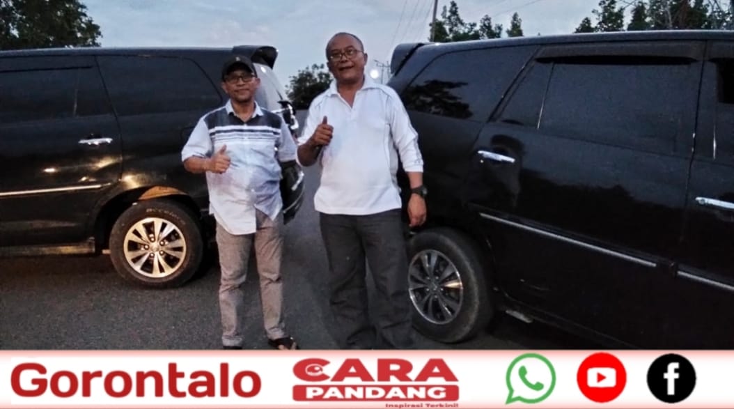 POHUWATO, CARAPANDANG - Kepala Satuan Polisi Pamong Praja (Kasatpol-PP), Nikson Pakaya bersama Kadis Perhubungan Herdi Poha Kabupaten Pohuwato antusias menjaga arus lalulintas menuju pintu masuk lokasi Half Marathon, yang bertempat di pelataran wisata pantai Pohon Cinta, Jumat (13/06/2025).