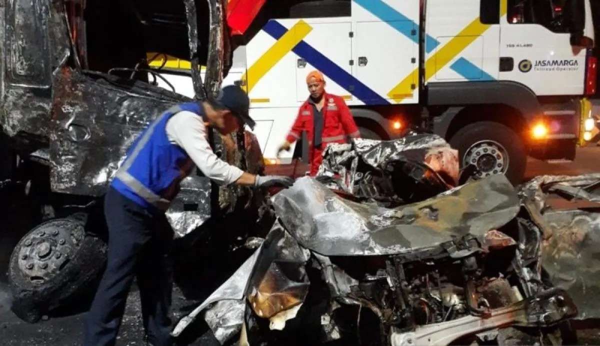 "Diduga kendaraan tersebut mengalami gagal fungsi rem (rem blong) sehingga menabrak rangkaian kendaraan yang sedang melakukan transaksi (pembayaran e-tol). Tiga kendaraan hancur terbakar, sementara tiga kendaraan lainnya mengalami kerusakan," ujar Kombes Eko.