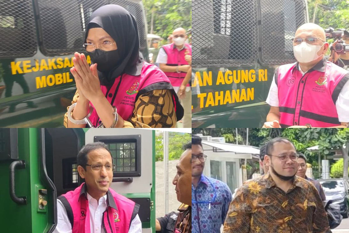 Berdasarkan pantauan ANTARA di Gedung Kejari Jakarta Pusat, tersangka Sri Wahyuningsih dan Mulyatsyah tiba di lokasi pada pukul 10.04 WIB, tersangka Nadiem Makarim tiba pukul 10.27 WIB, dan tersangka Ibrahim Arief tiba pukul 11.06 WIB.