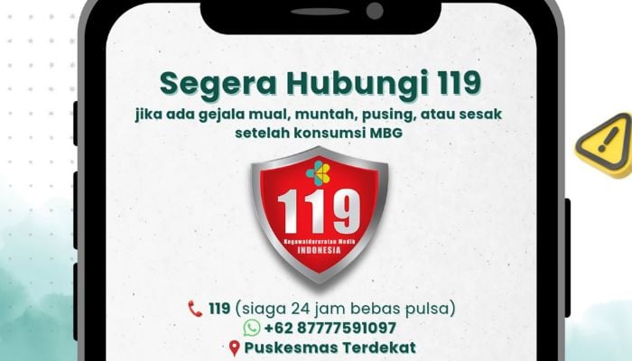 Masyarakat yang mengalami gejala seperti mual, muntah, pusing, atau sesak napas akibat MBG dapat segera melapor. Pengaduan bisa disampaikan melalui call center 119 atau nomor Whatsapp +62 87777591097.