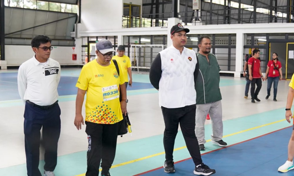 CARAPANDANG - Usai menghadiri BNI UI Half Marathon 2023, Menteri Pemuda dan Olahraga Republik Indonesia (Menpora RI) Dito Ariotedjo meninjau Stadion dan Lapangan Indoor Sarana Olahraga (SOR) Universitas Indonesia (UI), Depok, Jawa Barat, Minggu (16/7) siang.