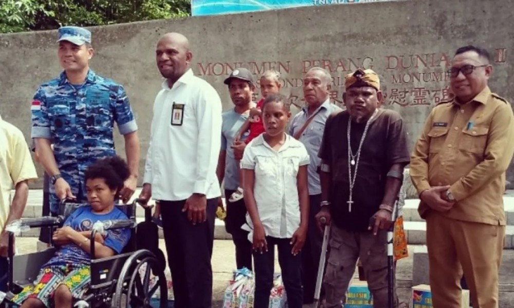 Kementerian Sosial melalui Balai Sosial Regional VI Papua-Maluku menyalurkan paket bantuan sosial berupa kursi roda dan tongkat penyangga jalan bagi penyandang disabilitas di Kabupaten Biak Numfor, Papua.