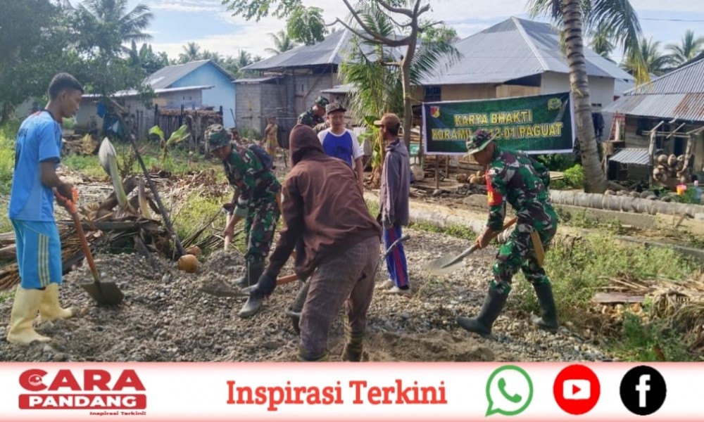 “Dalam kegiatan ini, kolaborasi antara TNI, pemerintah Desa dan Kecamatan serta masyarakat sangatlah penting. Kegiatan ini sangatlah berguna untuk membantu masyarakat setempat dalam melaksanakan aktifitas sehari hari dan juga dapat meningkatkan kenyamanan bersama,” Ujar Danramil 1313-01/Paguat.
