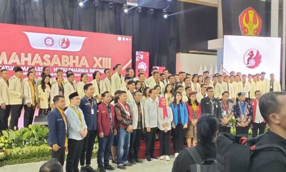 CARAPANDANG - Putri Khairunnisa, Ketua Umum DPP KNPI bersama organisasi kelompok Cipayung secara langsung ikut bersama Presiden RI Joko Widodo (Jokowi) beserta Ibu Iriana Jokowi membuka Kongres Nasional Mahasabha ke XIII Kesatuan Mahasiswa Hindu Dharma Indonesia (KMHDI) di Kota Palu, Sulawesi Tengah.