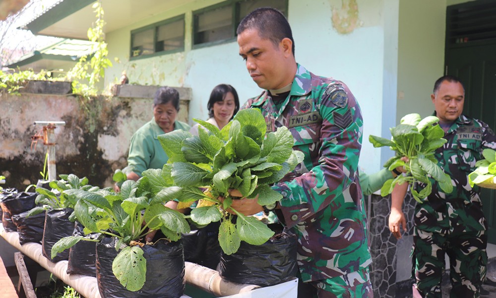 Salah satunya, melalui pemanfaatan lahan sempit yang ada di area sekitar Makodim. Sistem demplot pun, diterapkan pada pola penanaman sayur di lahan kosong yang ada di Makodim.