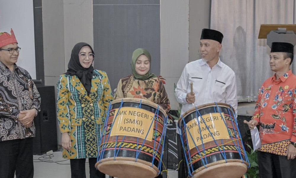 Gubernur Sumatera Barat, Mahyeldi di Padang, Kamis, 6/7/2023, menyebut kolaborasi adalah kunci untuk bisa bangkit dan menghasilkan inovasi seperti Batik Braja yang produksi SMK 2, SMK 4 dan SMK 8 Padang.