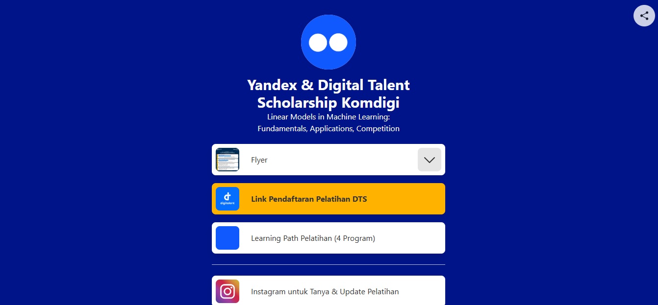 CARAPANDANG - Kementerian Komunikasi dan Digital membuka pelatihan gratis dan kompetisi daring Linear Models in Machine Learning: Fundamentals, Applications, and Competition. Pelatihan yang didukung perusahaan teknologi global Yandex ini merupakan bagian dari Program Digital Talent Scholarship (DTS) Badan Pengembangan Sumber Daya Manusia (BPSDM) Komunikasi dan Digital Kementerian Komunikasi dan Digital.