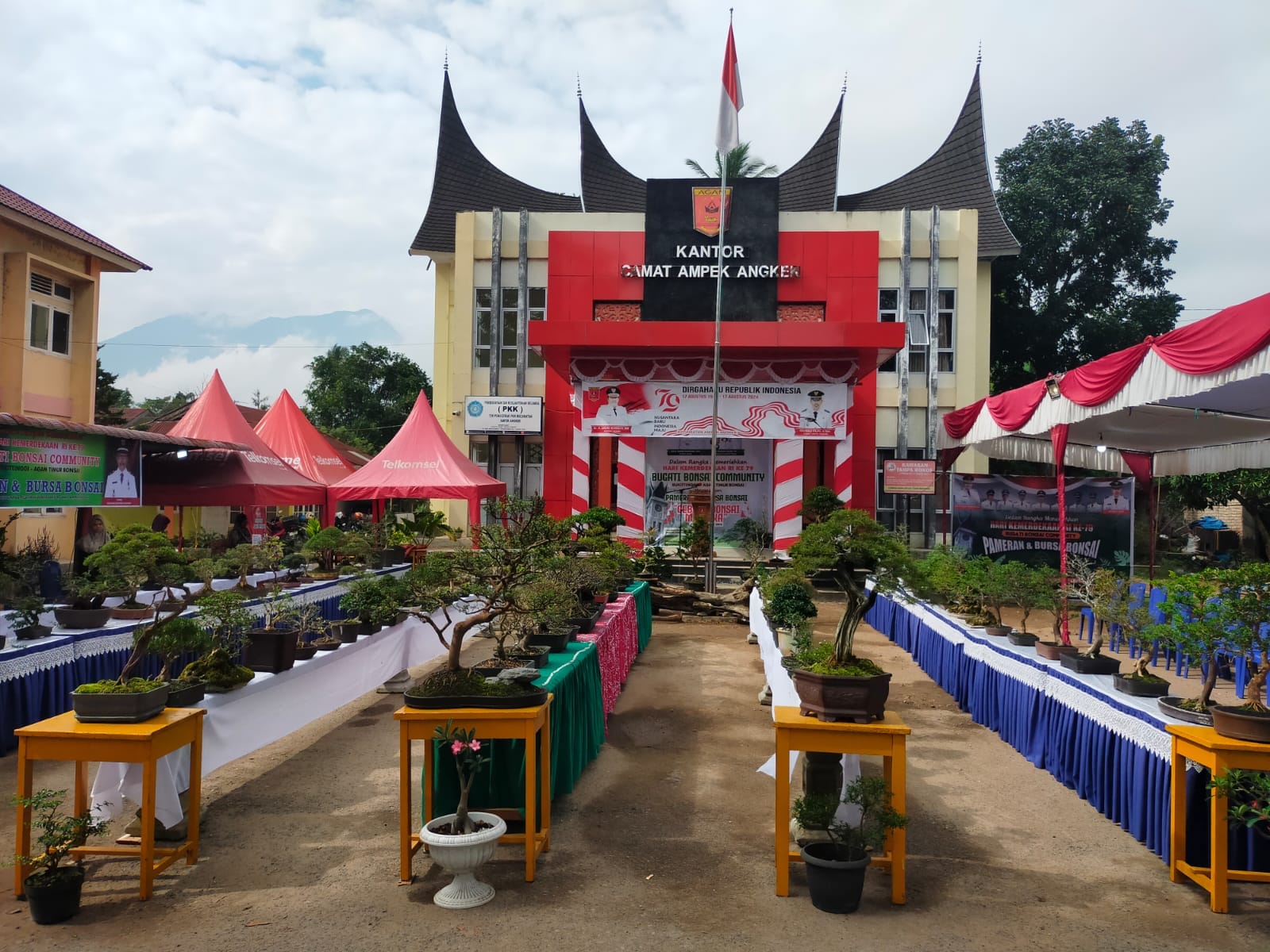 AGAM, CARAPANDANG - Komunitas Pecinta Bonsai Agam Bukittinggi (Bugati) menggelar pameran tanaman bonsai yang bertempat di Kantor Camat Ampek Angkek, acara ini digelar 22 hingga 25 Agustus mendatang dan dibuka oleh Bupati Agam Dr Andri Warman MM didampingi Camat Ampek Angkek dan beberapa kepala OPD,menampilkan berbagai jenis bonsai dari beragam tanaman yang dikuti para pecinta bonsai dari seluruh penjuru Sumatera Barat.