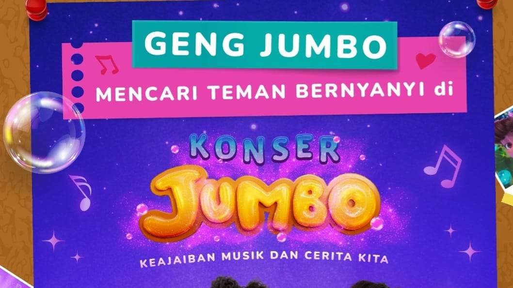 Detail konser dan tiket tersedia di situs loket.com/konserjumbo. Acara ini dipersembahkan oleh Antara Suara bersama Visinema Studios dan Film JUMBO.