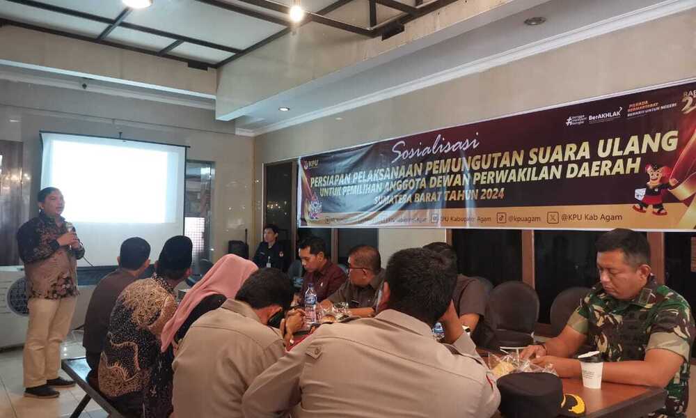 AGAM, CARAPANDANG - Komisi Pemilihan Umum kabupaten Agam lakukan Rakor Pemungutan Suara Ulang untuk anggota Dewan Perwakilan Daerah (DPD) Sumatera Barat.