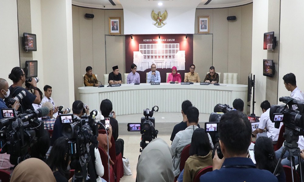 Hal ini terungkap pada sesi konferensi pers KPU yang diselenggarakan di Media Center KPU, Kamis (22/6/2023). Hadir Ketua KPU Hasyim Asy'ari, Anggota KPU Betty Epsilon Idroos, August Mellaz, Mochammad Afifuddin, Idham Holik, Parsadaan Harahap dan Yulianto Sudrajat hadir pada Konferensi Pers Update Pemutakhiran Data Pemilih Pemilu 2024, di Media Center KPU, Kamis (22/6/2023).