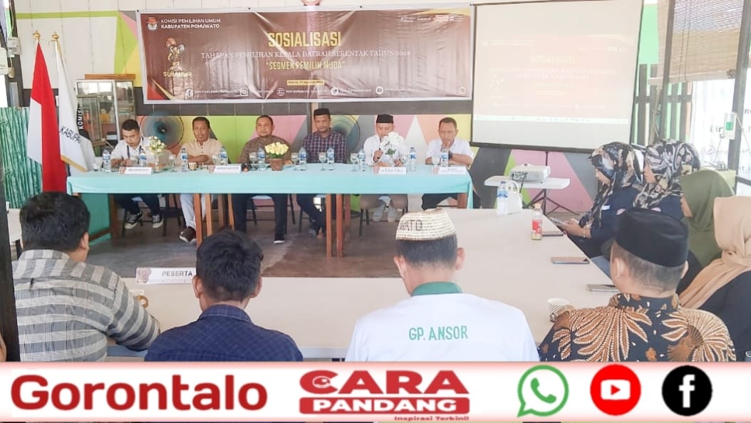 POHUWATO, CARAPANDANG - Komisi Pemilihan Umum (KPU) Kabupaten Pohuwato menggelar kegiatan sosialisasi tahapan Pemilihan Kepala Daerah (Pilkada) Serentak 2024, dengan fokus pada segmen pemilih muda. Acara ini berlangsung di Kedai Inspirasi, Desa Marisa Selatan, pada Senin (12/08/2024).