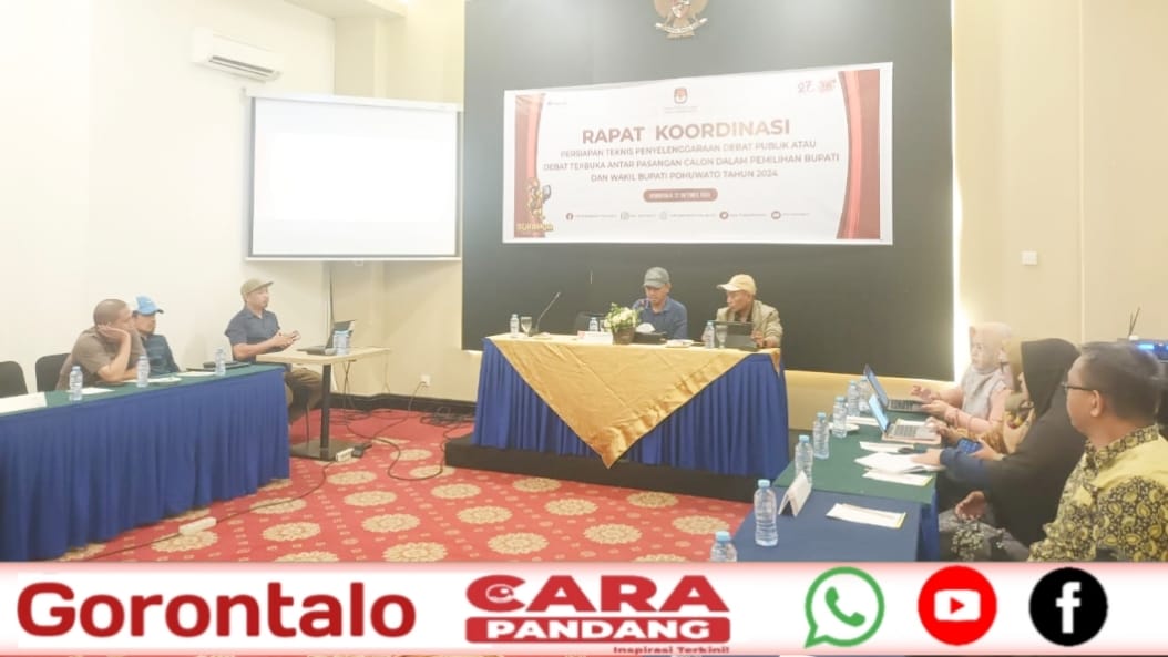 POHUWATO, CARAPANDANG - Komisi Pemilihan Umum (KPU) Kabupaten Pohuwato terus mematangkan persiapan debat pasangan calon kepala daerah dalam rangka Pilkada serentak tahun 2024