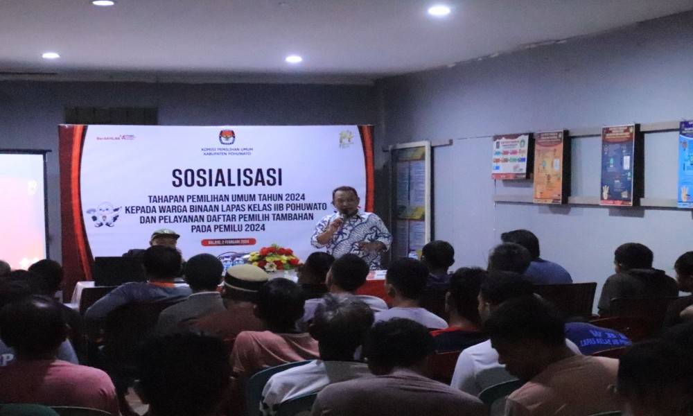 Sosialisasi tersebut berlangsung di aula lapas Pohuwato, dan turut dibuka langsung ketua KPU Pohuwato, Firman Ikhwan, komisioner KPU Pohuwato, Iskandar Ibrahim, Usman Dunda, Dian F Pakaya, serta kalapas Pohuwato dan ratusan warga binaan.