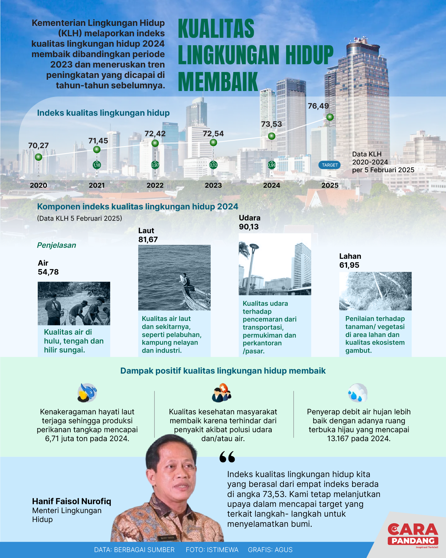 Beranda Infografis Kualitas Lingkungan Hidup Membaik Infografis Kualitas Lingkungan Hidup Membaik Kualitas lingkungan hidup membaik. Penulis Edo Soeryadi - 15 Februari 2025 06:23 0 CARAPANDANG.COM - Kualitas Lingkungan Hidup Membaik. Tags Kualitas Lingkungan Hidup Berita Sebelumnya Mendikdasmen: Deep Learning Dorong Bagaimana Belajar Mampu Memuliakan Manusia Berita Berikutnya Indonesia Dalam Dilema Misi Perdamaian Dunia LEAVE A REPLY Cancel reply Comment: Please enter your comment! Name:* Please enter your name here Email:* You have entered an incorrect email address! Please enter your email address here Website: Save my name, email, and website in this browser for the next time I comment. Berita Teratas Kisah Ajaib Nabi Sulaiman dan Anak yang Berbakti kepada Orang Tua 8 Cara Merawat Kucing Kesayangan Agar Tubuhnya Selalu Sehat Minuman yang Mampu Redakan Batuk yang Menganggu Manfaat Ajaib Bawang Putih Bagi Kesehatan 8 Cara Menjaga Kesehatan Gigi dan Mulut yang Efektif Berita Terkait Berita Terkait Wajah Baru PP Tunas: Garda Terdepan Perlindungan Anak Indonesia Zoel Rachman - 31 Maret 2026 09:42 MBG 5 Hari Sepekan Masih Wacana Maliq - 30 Maret 2026 11:49 Presiden Ingin Semua Kendaraan Dikonversi ke Listrik Maliq - 30 Maret 2026 11:48 Kewaijiban PSE Terhadap Pengguna Anak Maliq - 30 Maret 2026 11:15