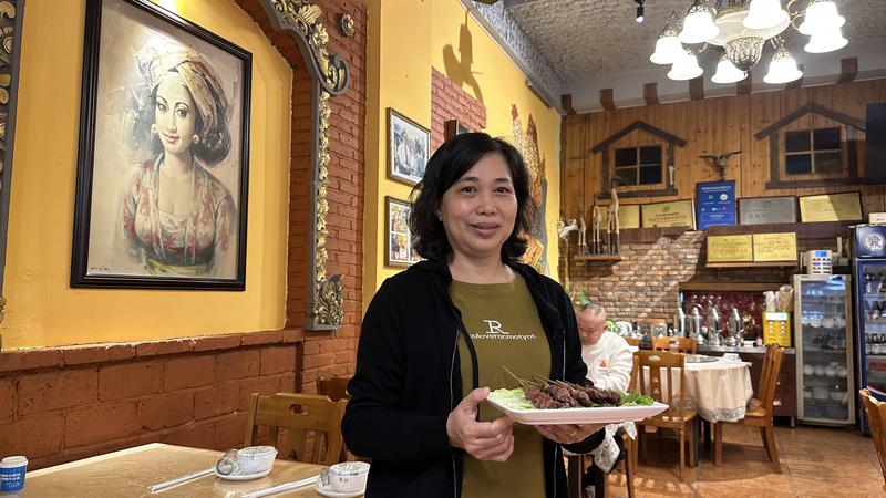 Di restoran milik Liang Jinhua, aroma kari yang kaya berpadu dengan kesegaran serai, menyambut para pelanggan. Lukisan dinding yang dibuat oleh para guru dan mahasiswa dari sebuah universitas di Indonesia, ditambah taplak meja berwarna cerah, menciptakan suasana bergaya Bali.