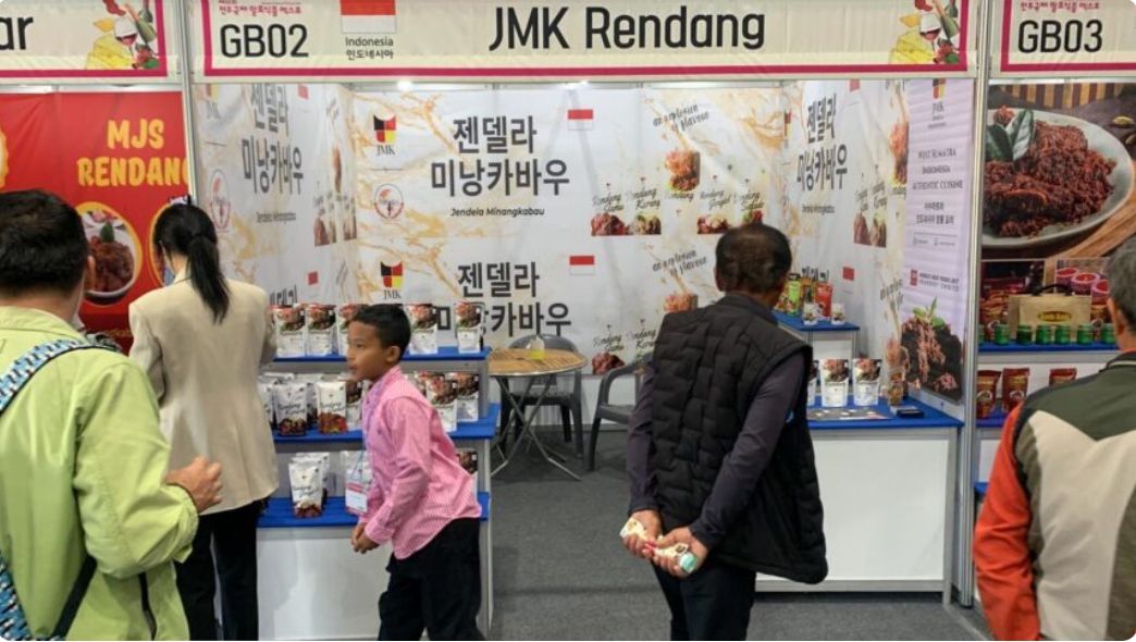 Suryani Sabri, salah seorang pelaku UMKM Sumbar yang menjadi produsen rendang dengan merek dagang Jendela Minangkabau (JMK) mengaku bersyukur dapat terlibat dalam kegiatan International Fermented Food  Expo (IFFE) Tahun 2024 di Korea Selatan.