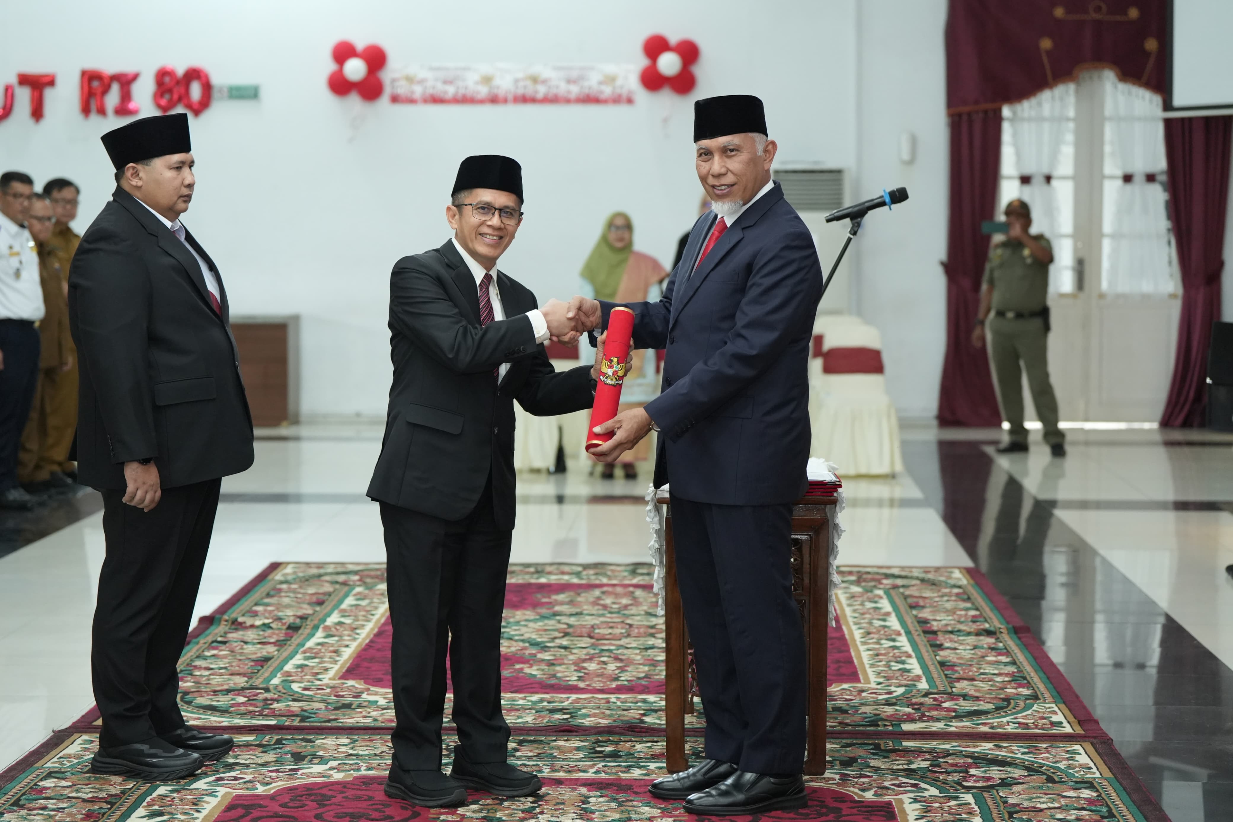 SUMBAR, CARAPANDANG - Gubernur Sumatera Barat (Sumbar), Mahyeldi Ansharullah melantik dua Pejabat Pimpinan Tinggi Pratama (eselon II) di lingkungan Pemerintah Provinsi (Pemprov) Sumbar. Pelantikan berlangsung di Auditorium Gubernuran, Selasa (2/9/2025).