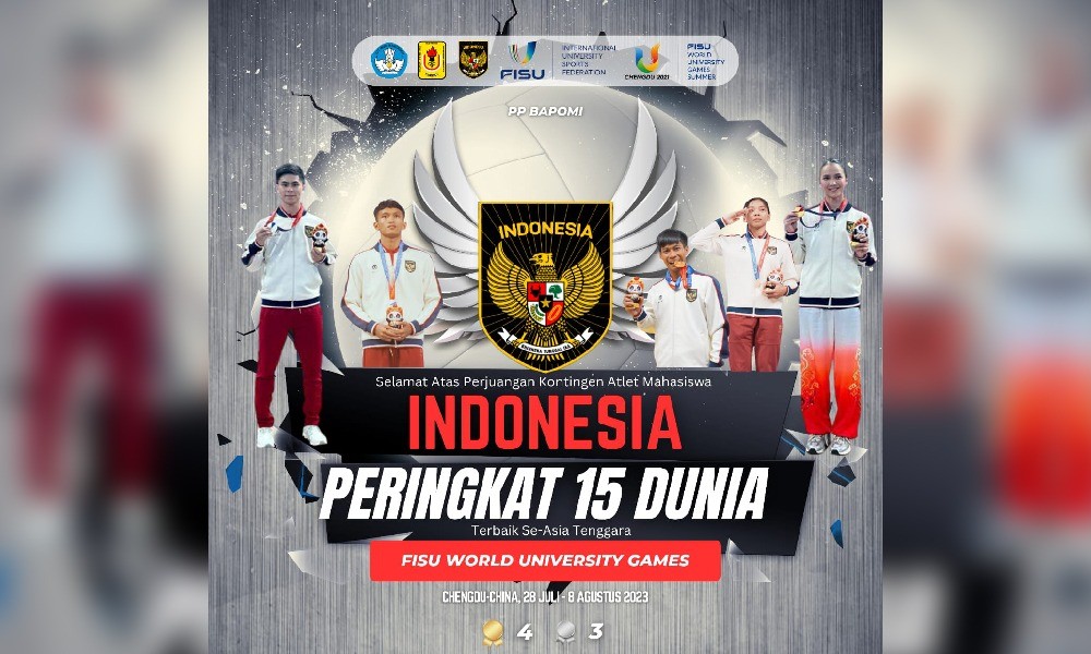 CARAPANDANG - Melalui cabang olahraga wushu, lima mahasiswa Indonesia mengukir prestasi pada ajang Pesta Olahraga Mahasiswa Dunia atau International University Sports Federation (FISU) World University Games 2021 di Chengdu, China, yang digelar pada 28 Juli hingga 8 Agustus 2023. Meraih peringkat ke-15, tim Indonesia membawa pulang empat medali emas dan tiga medali perak.