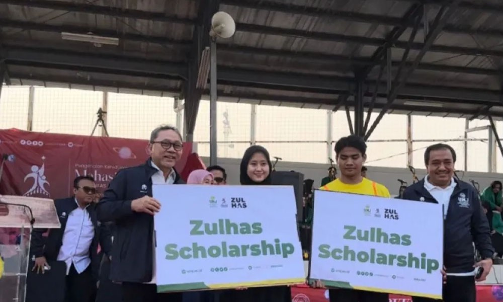 CARAPANDANG - Ketua Umum Partai Amanat Nasional (PAN) Zulkifli Hasan (Zulhas) menyerahkan bantuan beasiswa pendidikan senilai Rp300 juta bagi mahasiswa Universitas Muhammadiyah Jakarta (UMJ).