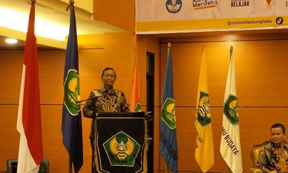 CARAPANDANG - Menteri Koordinator bidang Politik Hukum dan Keamanan (Menkopolhukam) RI Prof Mahfud Md menjelaskan perbedaan antara politik identitas dengan identitas politik kepada mahasiswa Universitas Bung Hatta, Padang, Sumatera Barat.