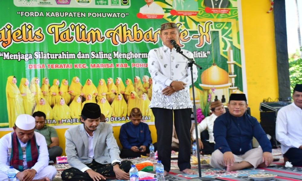 POHUWATO, CARAPANDANG.COM - Desa Teratai menjadi tempat pelaksanaan Majelis Taklim Akbar X yang rutin dilaksanakan setiap sebulan sekali dan diikuti majelis taklim se-Kecamatan Marisa, Paguat, Dengilo, Buntulia, Duhiadaa, dan Patilanggio, Minggu, (24/12/2023).