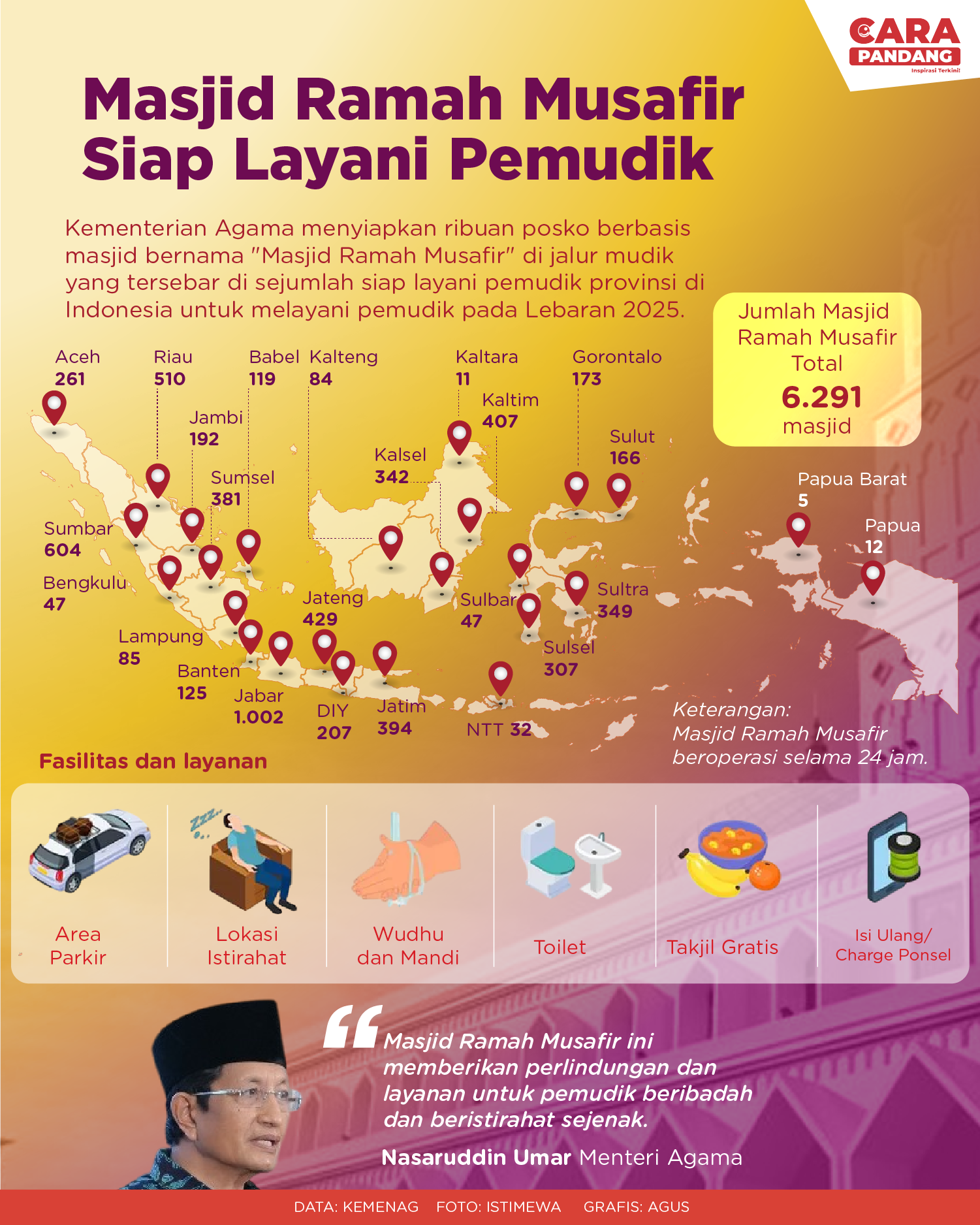 Beranda Infografis Masjid Ramah Musafir Siap Layani Pemudik Infografis Masjid Ramah Musafir Siap Layani Pemudik Masjid Ramah Musafir Siap Layani Pemudik. Penulis Rais Syauqi - 30 Maret 2025 12:07 0 CARAPANDANG.COM - Masjid Ramah Musafir Siap Layani Pemudik. Tags Infografik Lebaran Masjid Pemudk Berita Sebelumnya Ragunan Targetkan 600.000 Pengunjung Selama Libur Lebaran Berita Berikutnya Indonesia Dalam Dilema Misi Perdamaian Dunia LEAVE A REPLY Cancel reply Comment: Please enter your comment! Name:* Please enter your name here Email:* You have entered an incorrect email address! Please enter your email address here Website: Save my name, email, and website in this browser for the next time I comment. Berita Teratas Kisah Ajaib Nabi Sulaiman dan Anak yang Berbakti kepada Orang Tua 8 Cara Merawat Kucing Kesayangan Agar Tubuhnya Selalu Sehat Minuman yang Mampu Redakan Batuk yang Menganggu Manfaat Ajaib Bawang Putih Bagi Kesehatan 8 Cara Menjaga Kesehatan Gigi dan Mulut yang Efektif Berita Terkait Berita Terkait Wajah Baru PP Tunas: Garda Terdepan Perlindungan Anak Indonesia Zoel Rachman - 31 Maret 2026 09:42 MBG 5 Hari Sepekan Masih Wacana Maliq - 30 Maret 2026 11:49 Presiden Ingin Semua Kendaraan Dikonversi ke Listrik Maliq - 30 Maret 2026 11:48 Kewaijiban PSE Terhadap Pengguna Anak Maliq - 30 Maret 2026 11:15