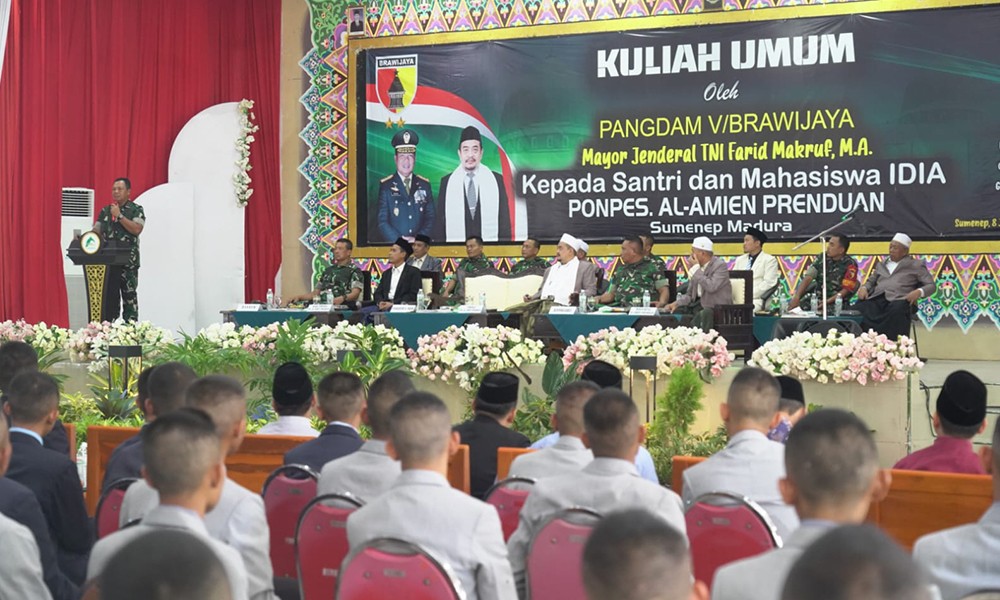 CARAPANDANG - Rangkaian kunjungan kerja yang dilakukan Pangdam V/Brawijaya, Mayjen TNI Farid Makruf di Pulau Madura, Jawa Timur terus berlanjut. Setelah sebelumnya berkunjung di beberapa Makodim yang ada di Madura, kini kunjungan orang nomor satu di tubuh Makodam V/Brawijaya itu berlanjut di Ponpes AL-Amien, Kabupaten Sumenep.
